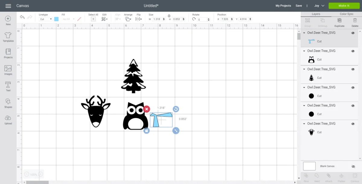 Make sure the machine is set to Cricut Joy and select “Make It” in Design Space.